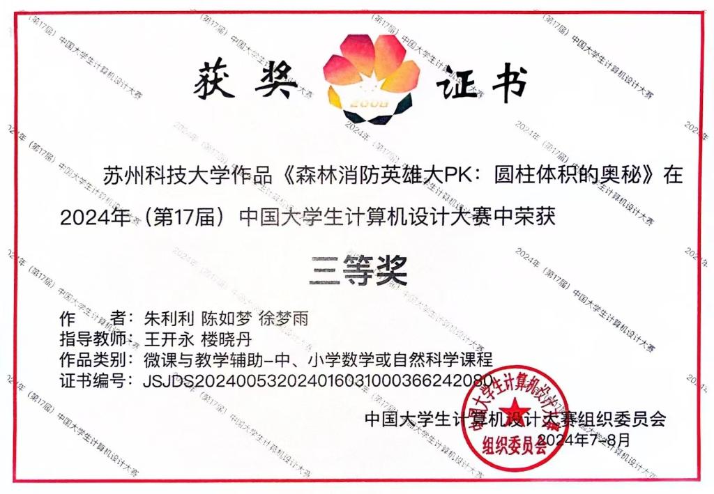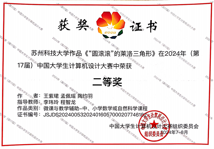 我院王紫珺、孟佩瑶、陶均羽团队的作品《“圆滚滚”的莱洛三角形》(指导教师:李玮玲、程智龙),朱利利、陈如梦、徐梦雨团队的作品《森林消防英雄大PK:圆柱体积的奥秘》(指导教师:王开永、楼晓丹)在微课与教学辅助类别分获全国二、三等奖。