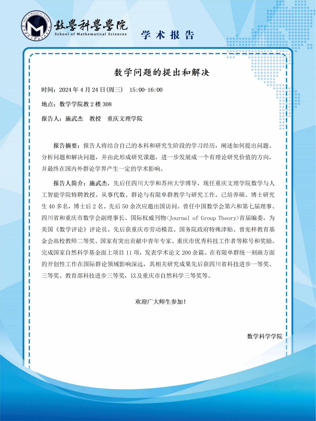 地点:数学学院教2楼308