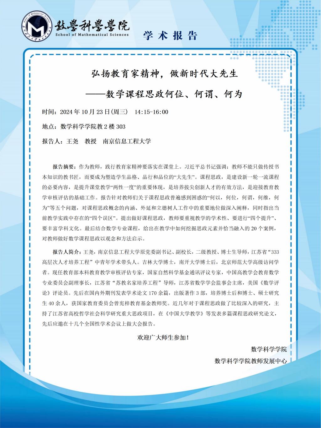 弘扬教育家精神,做新时代大先生——数学课程思政何位、何谓、何为