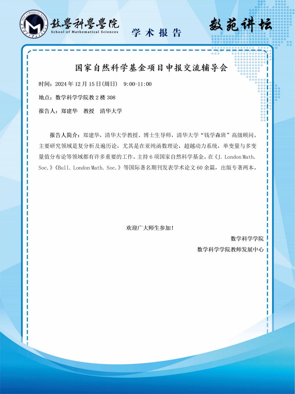 【数苑讲坛】第四讲:国家自然科学基金项目申报交流辅导会