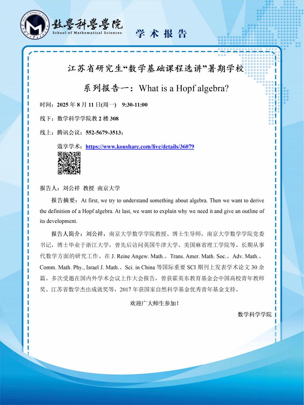 地点:线下:英国365集团教2楼308 线上:腾讯会议:552-5679-3513